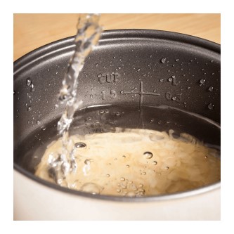 Cooks then keeps rice warm for up to 6 hours