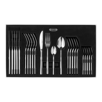 Made from Stainless Steel, Contents: 6 table knives, 6 table forks, 6 dessert spoons, 6 tea spoons.