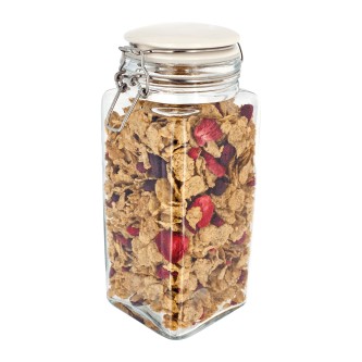 Ideal for preservation and kitchen storage. Clear glass jar with Ceramic lid. Metal lever-arm sealing mechanism with Silicone sealing ring.