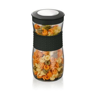1.3L Storage Jar, clear glass jar with textured silicone grip. Matching lid with chromed insert.