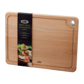 Chunky chopping board made from Natural Beech Hardwood, natural mechanisms within wood inhibit bacteria. Reversible - Twice as much wear.