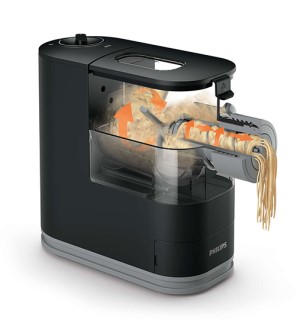 The Philips Viva Pasta & Noodle Maker not only enables fast and automatic mixing, kneading and extruding; it also guarantees good texture and taste of the pasta and noodles.