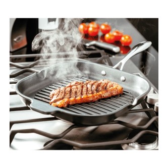 28cm Grill Pan with high heat retention and distribution for great grilling performance. High ridges ensure a 'dry' cook, keeping food well away from any drained fats and oils. Sharp edged ridges 'sear' into the food, resulting in a delicious char grilled flavour with characteristic stripes.