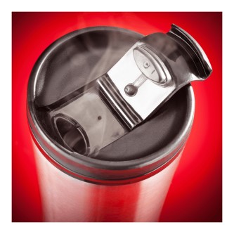 Double walled stainless steel body retains hot or cold temperatures for up to 6 hours. Flip vacuum seal lid with secure stopper for ease of opening. Take your favourite hot or cold drink with you. Fits most vehicle cup holders.