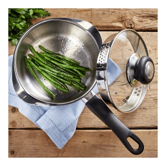 18cm / 2.1L Draining Sauce Pan with vented glass lid.