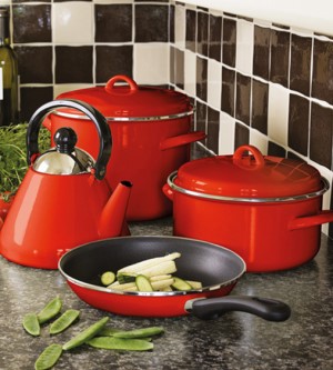 Easy clean enamelled coating with comfortable handles. All round stainless steel pouring lip with Teflon classic non-stick coating.