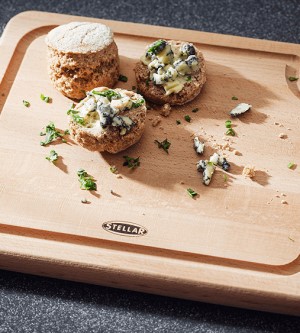 Chunky chopping board made from Natural Beech Hardwood, natural mechanisms within wood inhibit bacteria. Reversible - Twice as much wear.