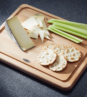 Chunky chopping board made from Natural Beech Hardwood, natural mechanisms within wood inhibit bacteria. Reversible - Twice as much wear.
