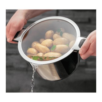 Designed for easy one handed draining. Time saving thanks to easy-to-read internal measuring guides. Even heat distribution due to 'hot forged' bases. Space-saving lid design that is stackable for easy storage.